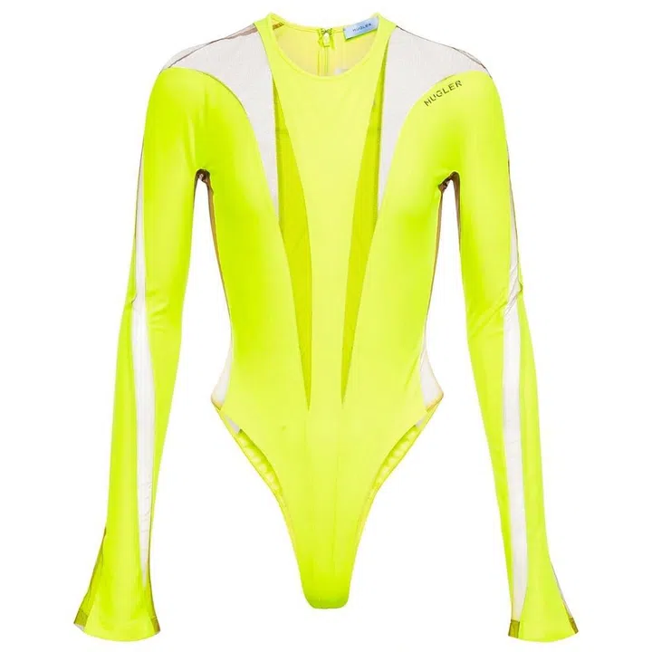 The iconic paneled mesh bodysuit is surprisingly not that difficult to wear. Not far off from his late predecessor, Cadwallader stays true to the brand DNA with its contrast of sexy, classy and avant garde. Style it with a blazer, low rise straight leg jeans, pointy toe pumps and an Hourglass bag.