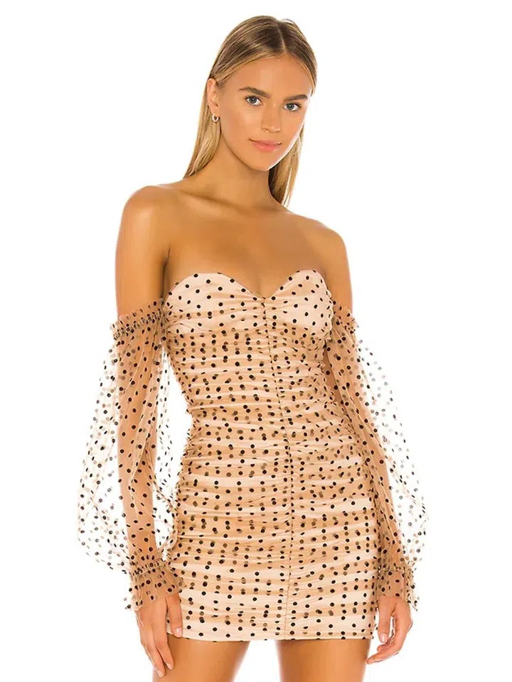 Naked, but not completely naked, this mesh overlay polkadot dress is a playful contrast between sweet and sexy, innocent and worldly. Wear it with square toe sandals and a structured bag for a night out or sneakers for the day.