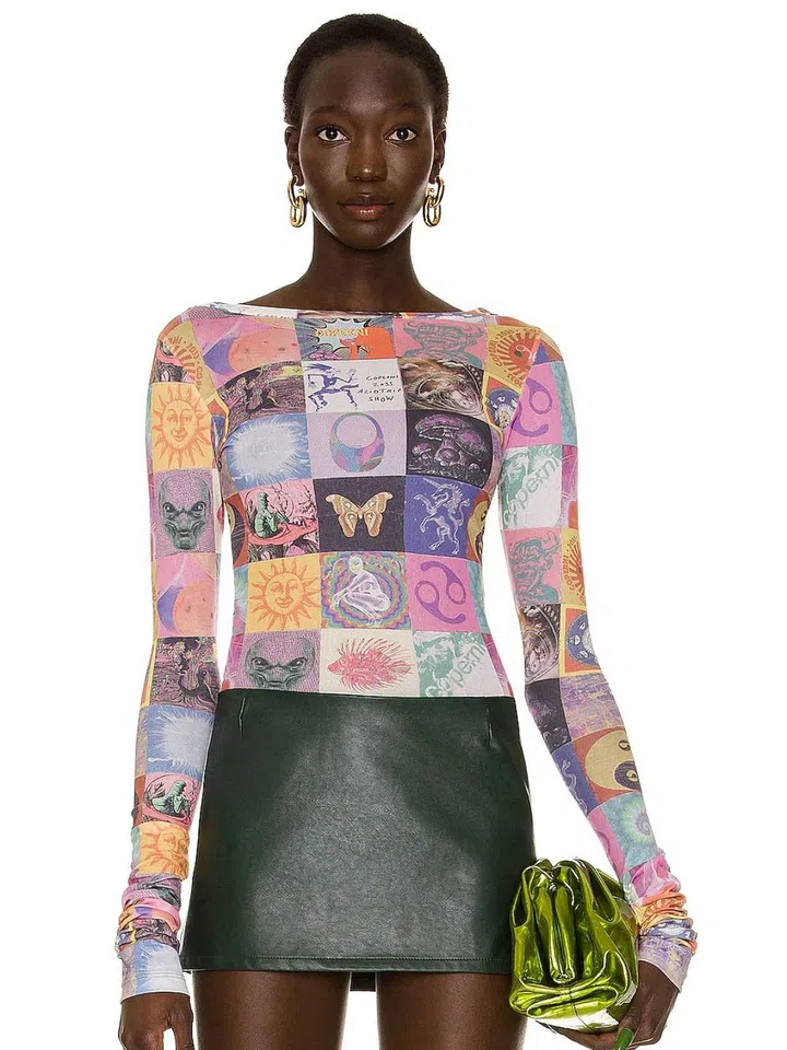 Up and coming label Coperni serves psychedelic vibes with this trippy mesh top. Style it with a miniskirt and platform shoes for the ultimate Bratz vibe.