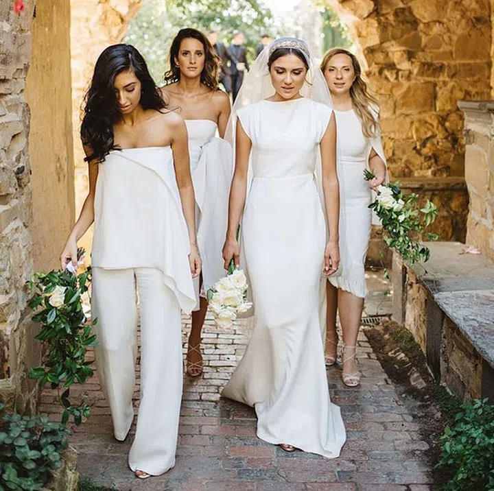 A bridal party in white looks fab in wedding pictures. Have them don simpler or shorter frocks so you'll still stand out in your gown.