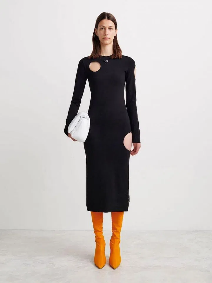 We love this body-hugging long black dress from Off-White because it’s so effortlessly cool and easy-to-wear. The midi length more than makes up for the skin-baring cut-outs and we know it will surely make heads turn. Pump it up with a pair of boots in a bright hue. Not for the faint hearted.