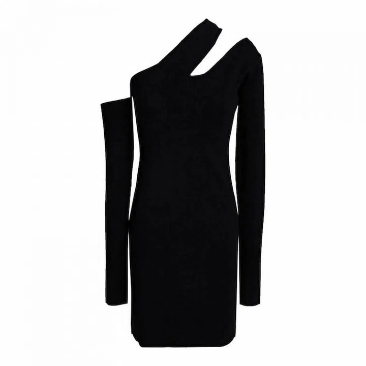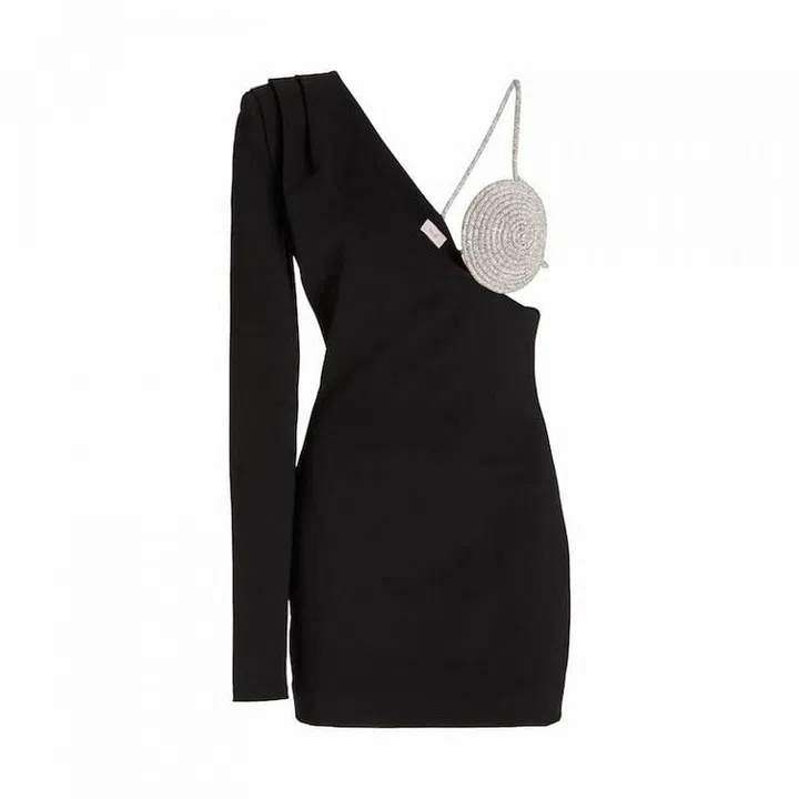 Inspired by the glamorous ‘80s, this LBD by Nanushka comes with strategic cutouts for high impact. Pair with statement earrings, stilettos and glossy red lips.