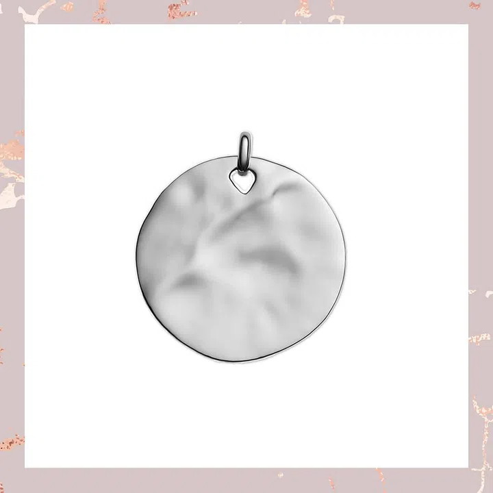 One of our favourite pieces to personalise? The Ziggy round pendant charm - a gently hammered charm which can easily be mixed with other charms. The ample 18mm diameter also allows for your creativity to run wild.