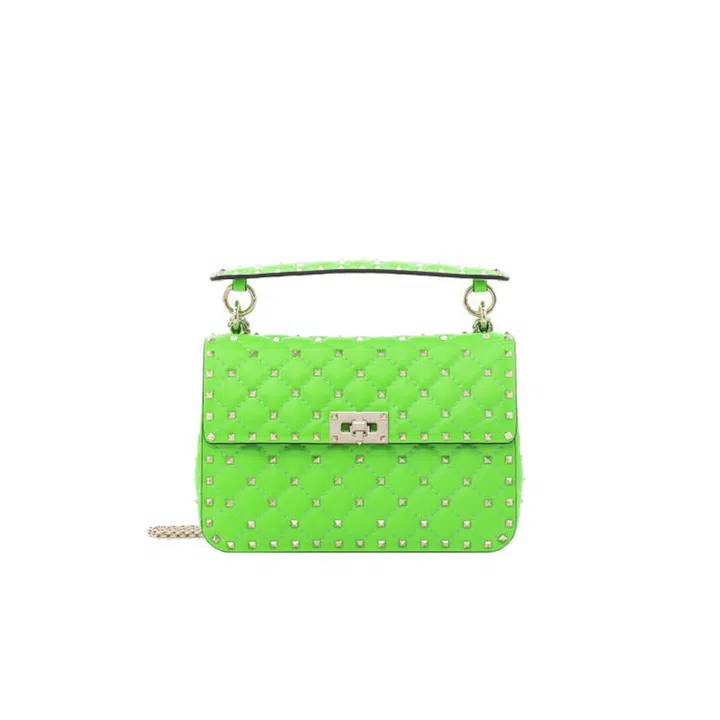 Since its launch, the series has also added new design elements such as materials, colours, and prints to make the bag more visually interesting. For the brand’s Spring Summer 2020 collection, the Rockstud Spike handbags have been given a makeover and now sport bright fluorescent colours, adding even more character to the bag.