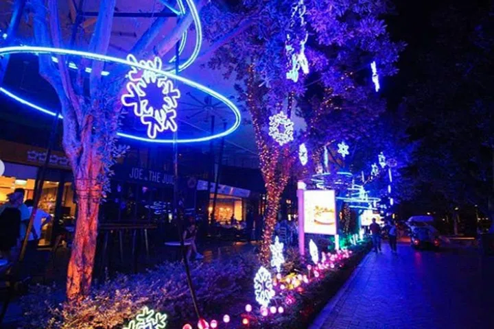 With a marina of docked yachts and a boardwalk that's perfect for a romantic stroll, Quayside Isle comes alive with brilliant light displays and over 300 colour-changing snowflake installations for the holiday season in addition to its existing Illumintae By The Marina showcase.