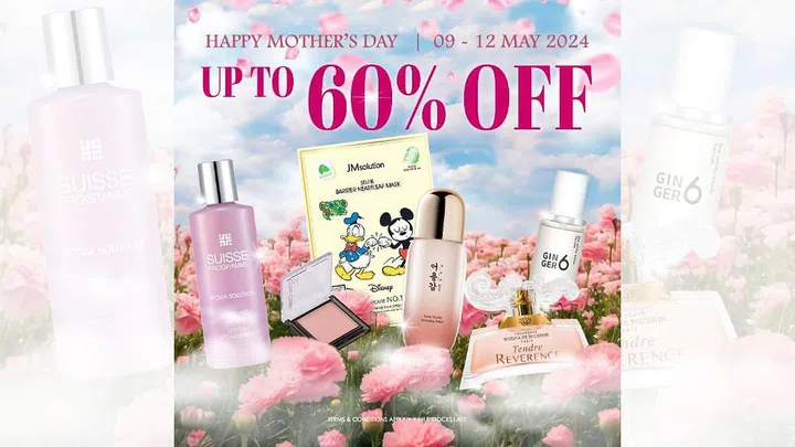 That's not all. From 9 to 12 May 2024, expect up to 60% off your favourite personal care, fragrances, personal care, makeup and accessories! We'll see you at checkout.