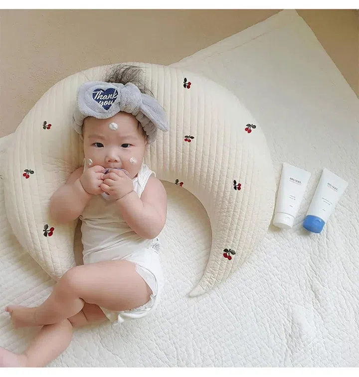 One option to consider is a moon-shaped pillow – these incredibly soft pillows are designed to cradle a baby, providing a cosy and secure sleeping environment. They can be especially helpful in preventing them from rolling over, a common concern for new parents.