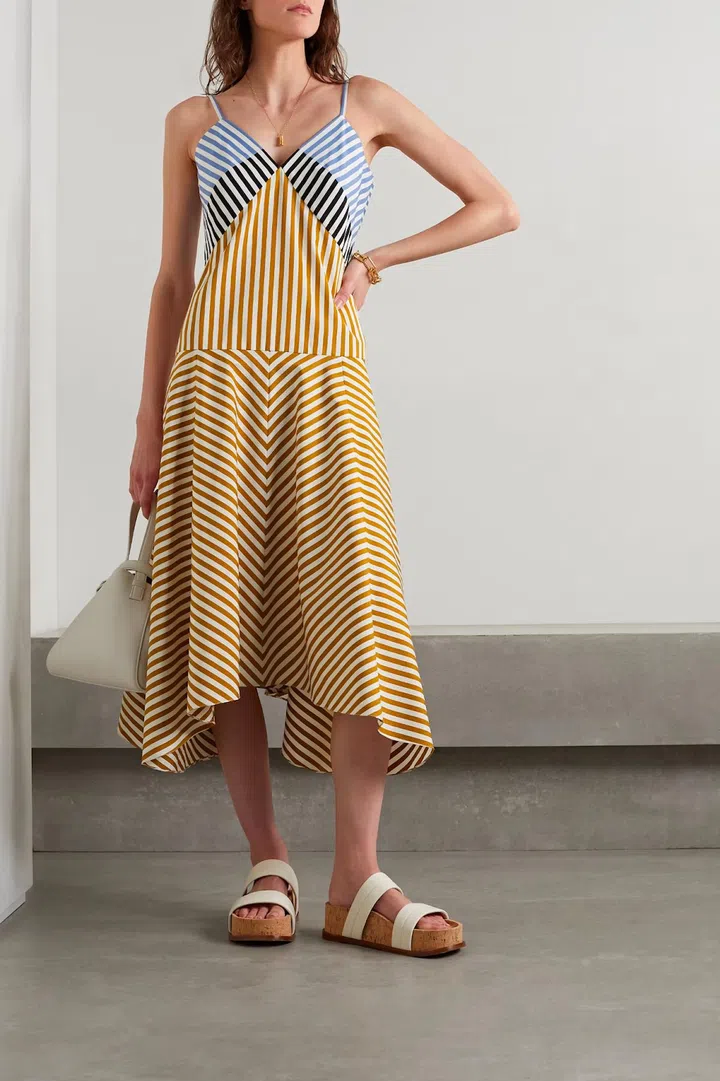 PARTOW Myla asymmetric striped cotton-poplin midi dress