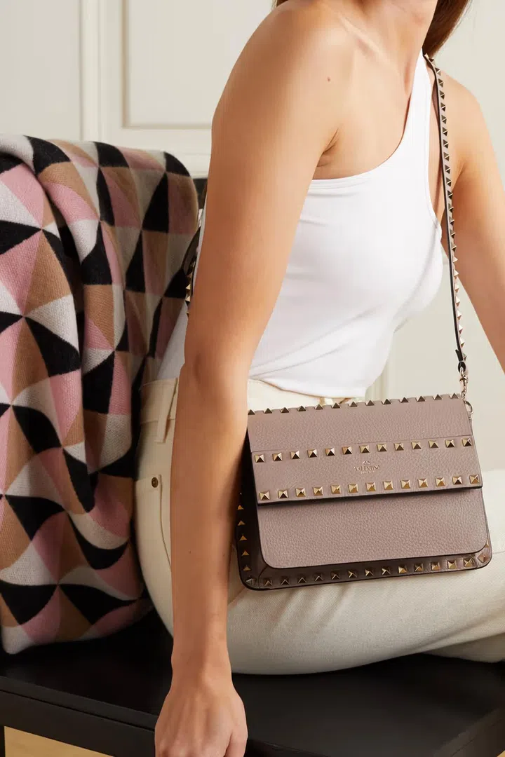 VALENTINO GARAVANI Rockstud textured-leather shoulder bag