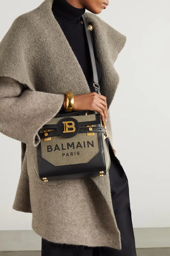 BALMAIN B-Buzz 23 leather-trimmed printed canvas shoulder bag