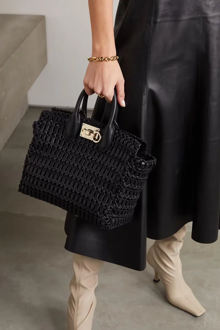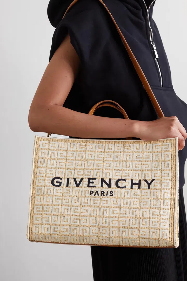 GIVENCHY G-Tote medium leather-trimmed raffia-jacquard tote