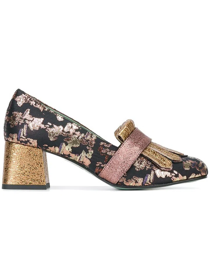 A more “subtle” take on statement heels, these loafer pumps have just the right amount of edge and bling to do all the talking. We especially adore the use of gold and rose gold to complement the matte black exterior of the shoe.