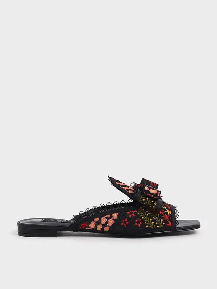 There are slides, and then there are these slides that feature not just stunning embroidery but also edgy lace detailing and an accent bow. We love these slides for brunch – pair with a basic navy sundress or high waist shorts and crisp linen shirt combination. Pro tip: match your lipstick colour to the lightest red on the shoe that your skintone can pull off.