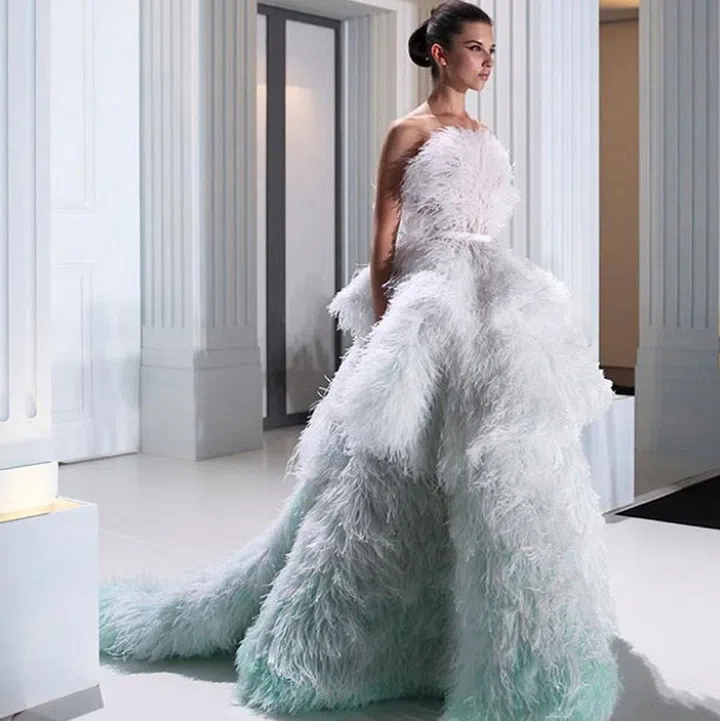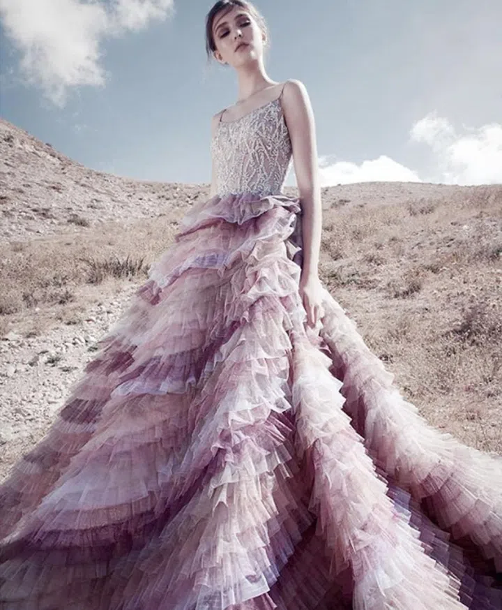 Can you rock more than two colours in one dress? This one by Tony Ward proves you can, looking like a watercolour work of art with blue, mint and pink stitched into one dreamy confection.