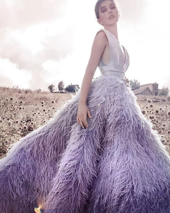 Lilac's set to be the colour to watch in 2018 - and this dramatic plumed number is just perfect for rocking the trend and getting heads turning for the evening.