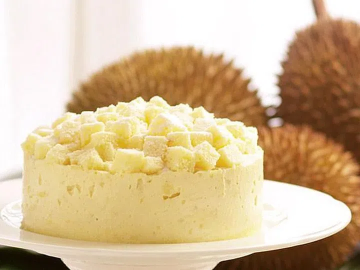 Goodwood Park Hotel is famous for its seasonal durian cakes - like this tantalising durian mousse cake.