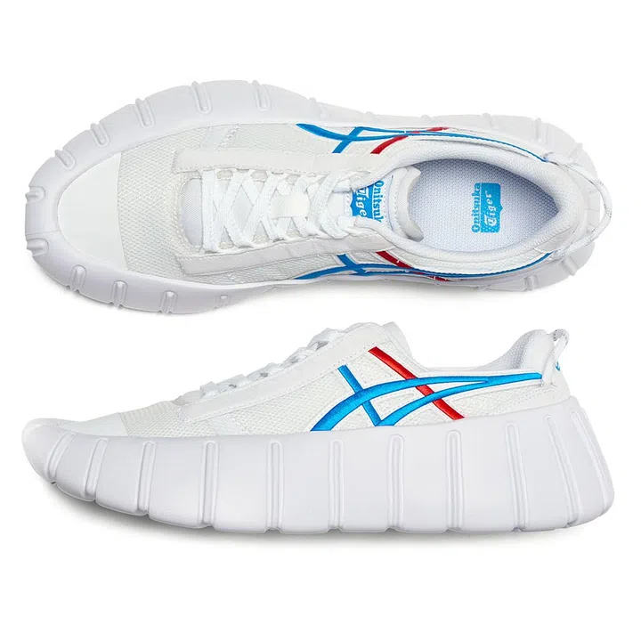 The GIGATIA and TIGER HORIZONIA take cues from the archives, juxtaposing new sculptural soles with uppers made up of several heritage styles.