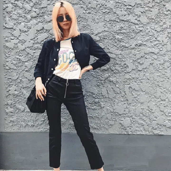 Upgrade your go-to denim jeans and tee ensemble with some denim dungarees. Great for a Sunday brunch with the girlies and a trip to the farmers’ market, this outfit screams comfort without compromising style. Borrow a leaf out of style maven Irene Kim’s book and complete your look with a pair of funky geeky aviator glasses.