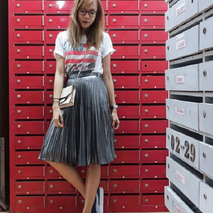 It is official, metallic midis are in. We love the juxtaposition of an elegant metallic midi with a laidback graphic tee. Take your printed tee to new heights and look years younger by teaming your classy pleated midi with a kooky graphic tee. Go with some comfy kicks to dress down your look or put on some heels if you are heading to an after-hours party.