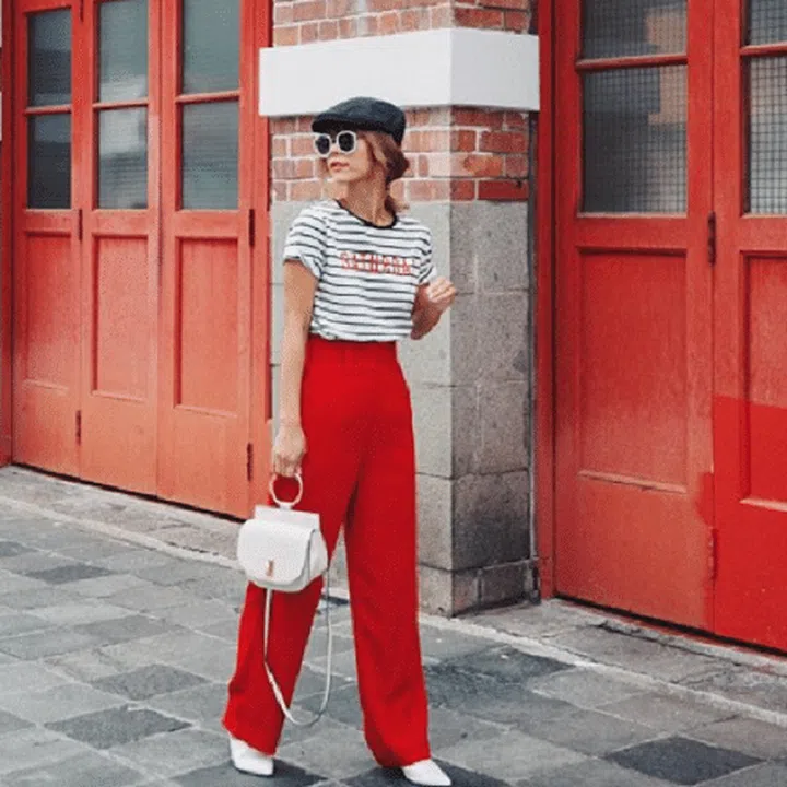 Clean-cut trousers and a fun printed graphic tee makes for an unexpected yet refreshing match made in heaven. Elevate your outfit by throwing brightly coloured pants into the mix. If you are going to wear brightly coloured trousers, opt for a neutral coloured tee, like white and black. To make your outfit more office appropriate, you can even throw on a blazer for added structure and shape.