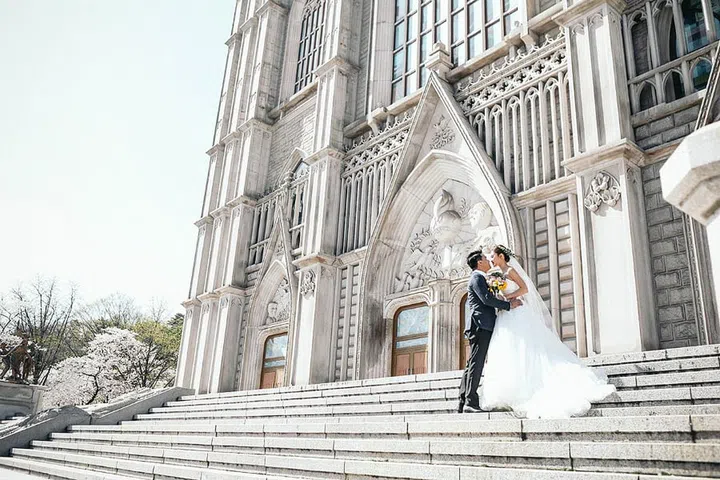 "Shortly after we took this shot, the authorities came and told us no photo-taking was allowed. We then realised that most couples were taking photos outside the main gate of the cathedral.