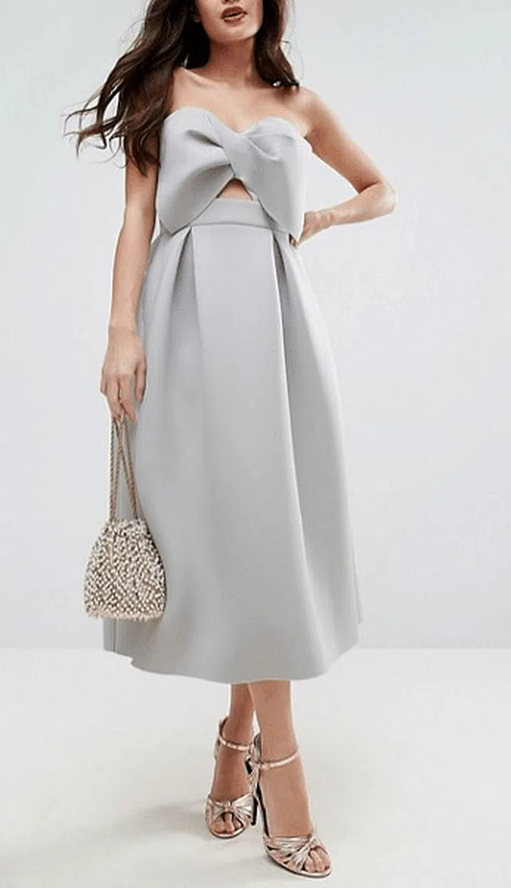 ASOS, Premium bow scuba skater midi scuba dress, $158.36