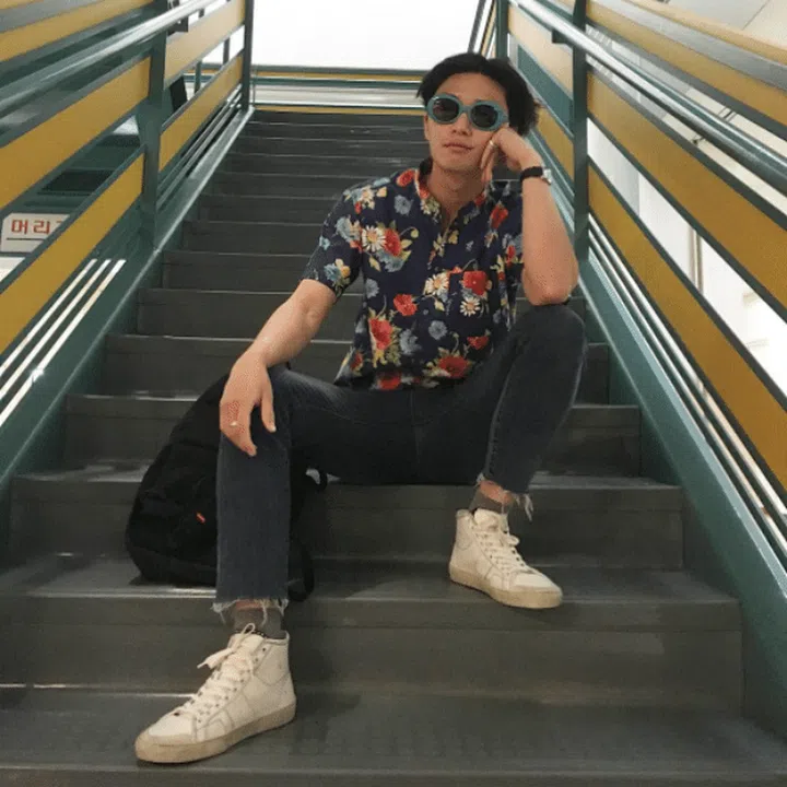 Plus 100 points to men who aren’t afraid to pull off florals! Park Seo Joon looks all ready for a Hawaiian vacation with quirky blue-rimmed sunglasses to boot.