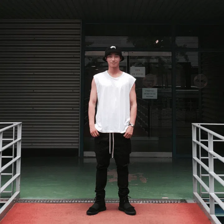 This laidback monochrome outfit is a winner because it’s minimalist and immediately draws attention to his well-toned arms, which we ladies can’t get enough of. A smart way to say “I’ve been gymming”, indeed. Photo: Park Seo Joon/ Instagram