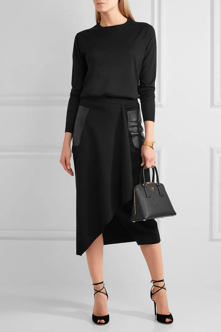 Max Mara leather-trimmed wrap-effect wool pencil skirt, $771 from Net-a-porter