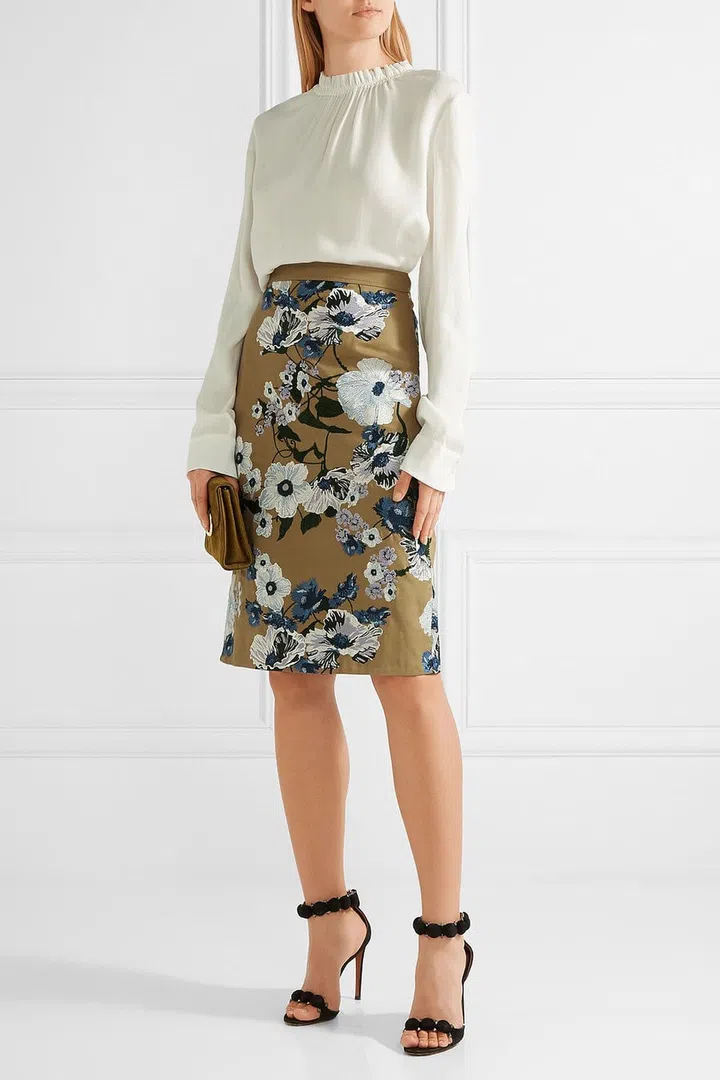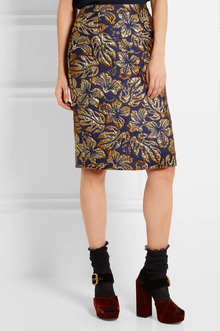 Prada metallic floral-jacquard pencil skirt ,$1,342 from Net-a-porter