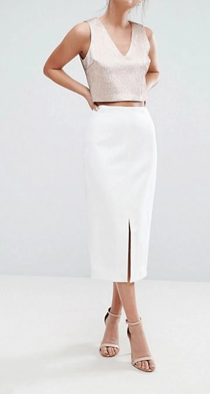 This detail makes this skirt a perfect option for any after-work activities - it is versatile enough to extend to an evening occasion. Tuck a white v-neck shift blouse with this during the day, then just swap for a sweetheart neckline tube top for your evening antics. Sorted!