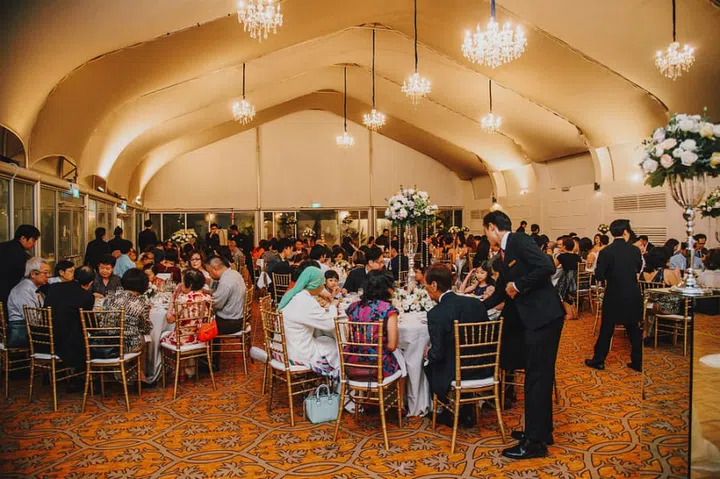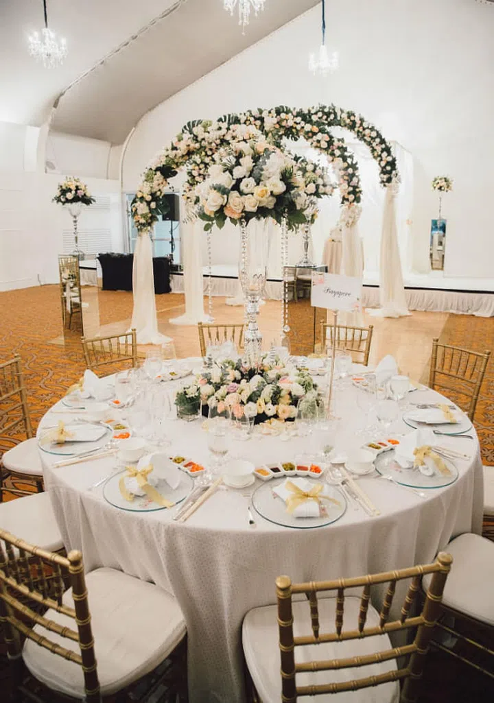 The cosy and intimate dinner party of only 150 close family and friends at the Garden Pavilion at The Ritz-Carlton, Millenia Singapore.