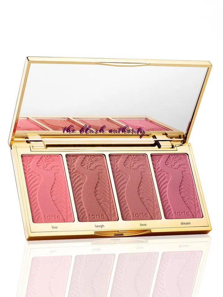 This blush palette contains four shades of Tarte’s Amazonian Clay 12 Hour Blush in limited edition shades - Live (a poppy coral), Laugh (a peachy coral), Love (a nude mauve) or Dream (soft fuchsia).