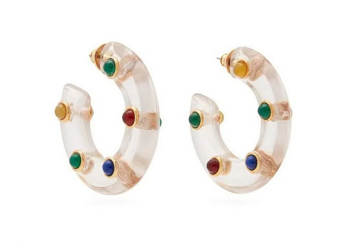You can never go wrong with statement earrings, even if the rest of your outfit screams basic. This pair of perspex earrings features clean lines, with multi-coloured gem insets to keep things interesting.