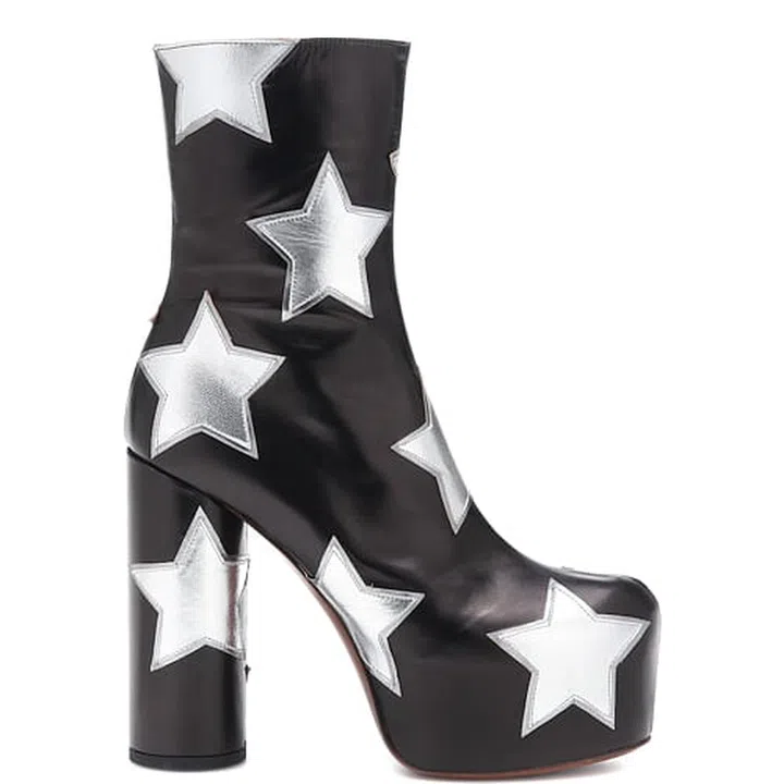 What comes to mind immediately is one of the biggest shoe trends of the year: The platform boot. Set atop a chunky, elevated sole and completed by altitudinal heels that sometimes sport retro angular shapes, platform boots as seen from the ‘60s, then ‘70s, and even ‘90s are once again officially given the fashion world’s thumbs up.