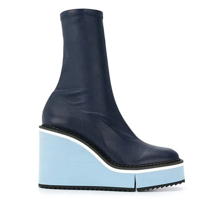Bringing the art of colourblocking to shoe design, Clergerie’s Bliss boots are crafted from lamb nubuck leather in a dark blue shade and set on a contrasting pastel sky blue wedge heel. Peek at the details of these boots, and the design starts to really come alive: Boasting of an extra stripe of white at the edge of where the boots meet the sole and jagged shark tooth soles, these boots captures a sense of polished luxury with a sportier vibe.