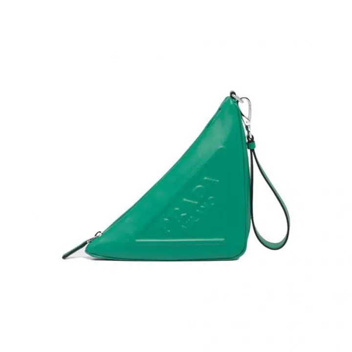 The Prada triangular logo has been popping up a lot at the Italian house ever since Raf Simons came onboard as co-creative director last year. Since then, this quintessential house code has been reappropriated as embroidered patches, prints, brooches, earrings and shoe buckles.