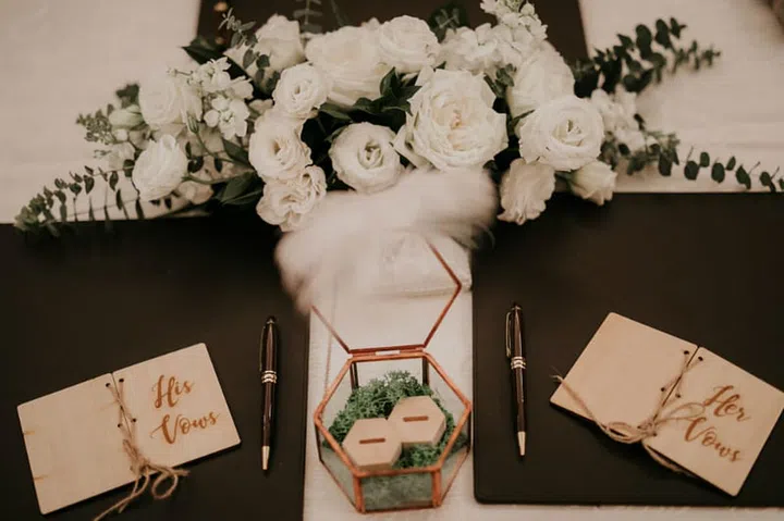 Have your wedding rings prettily displayed on your actual day, with these wedding ring pillows and holder ideas from our couples.