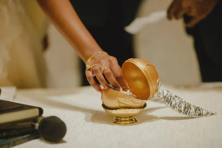 For Janani & Shoban's Harry Potter themed wedding, the talented bride actually created a Snitch-inspired ring box that held their wedding bands.