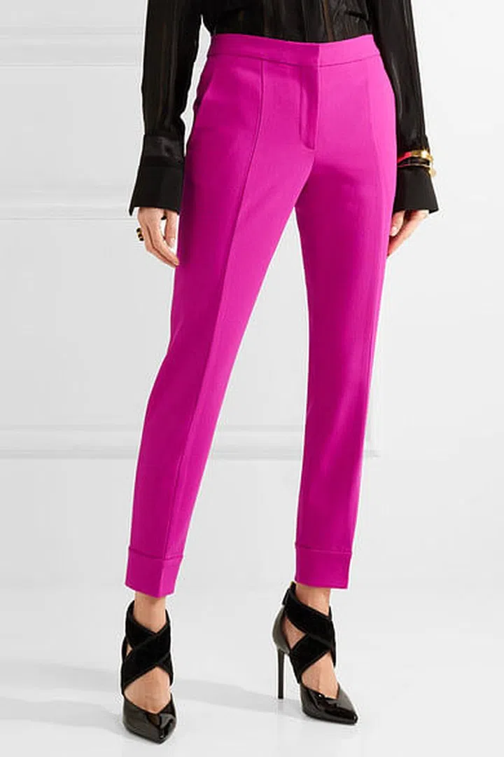 Mid-rise, tailored, tapering to an ankle hem...everything a good set of trousers should offer. Some may think the colour pink can come off as tacky or cheap, but these quality trousers show the exact opposite is true too.