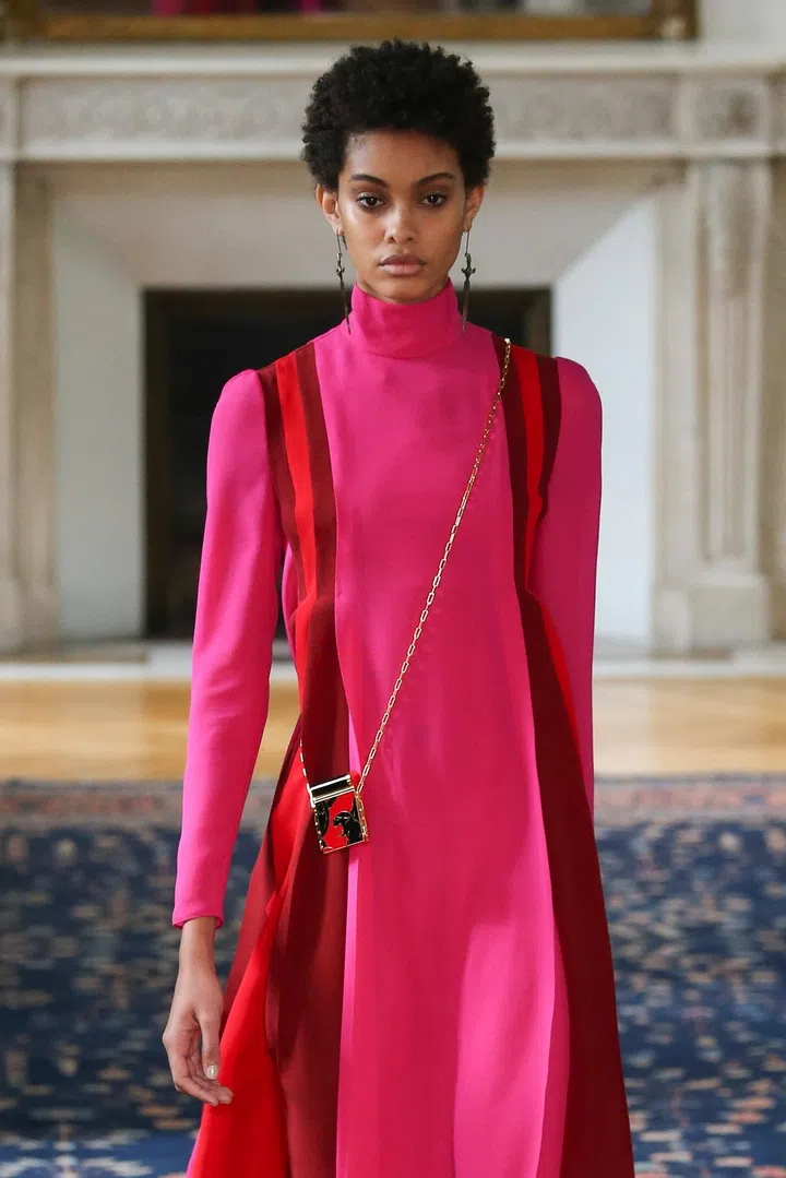 Valentino kept it both strong and block colour bold as well as playing with different fabrics to offer texture to the outfits. If you’re not ready for the full on pink, you can introduce pink into your attire just by picking the right shoes or handbag.