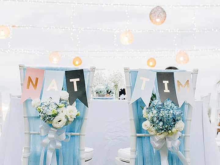 Take cues from Felicia and Darren's wedding, and have your aisle in pretty sky blue.