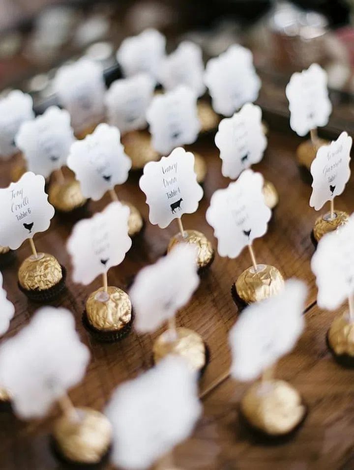 See also: macaron dessert escort cards, Harry Potter themed seating cards, and more fun place card ideas for your wedding.