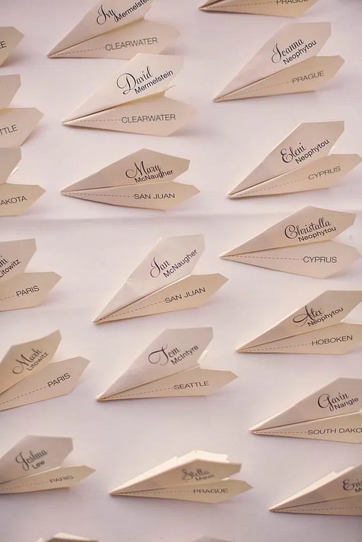 Perfect for a travel-themed wedding, and so easy to recreate. See how real couple Stefanie and Samuel had similar escort cards for their elegant ivory and black wedding.