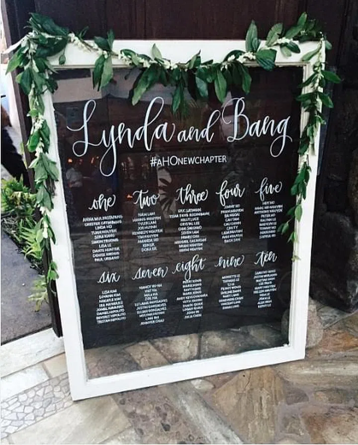 Seating charts or escort cards aren't commonly used in Singaporean weddings - couples usually enlist the help of one or two of their wedding party to be stationed at the reception table where guests sign the guestbook, present their wedding gifts or ang pows, and they'll be guided to their allocated table.
