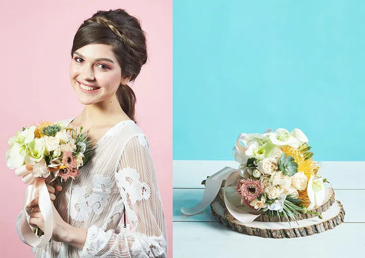 Fetching makeup to take you through your outdoor wedding – and exuberant bouquets that match!