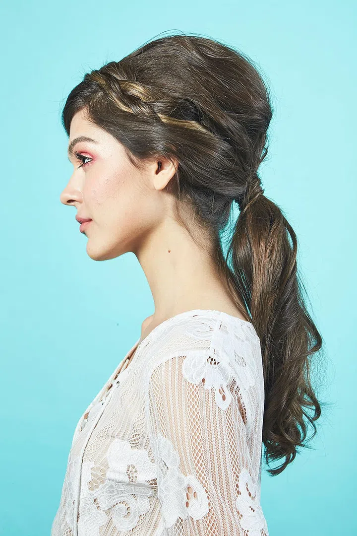 A textured, braided ponytail is a classy and chic style, and strikes a perfect balance between elegant and laid-back. A perfect choice to take you through your outdoor wedding.
