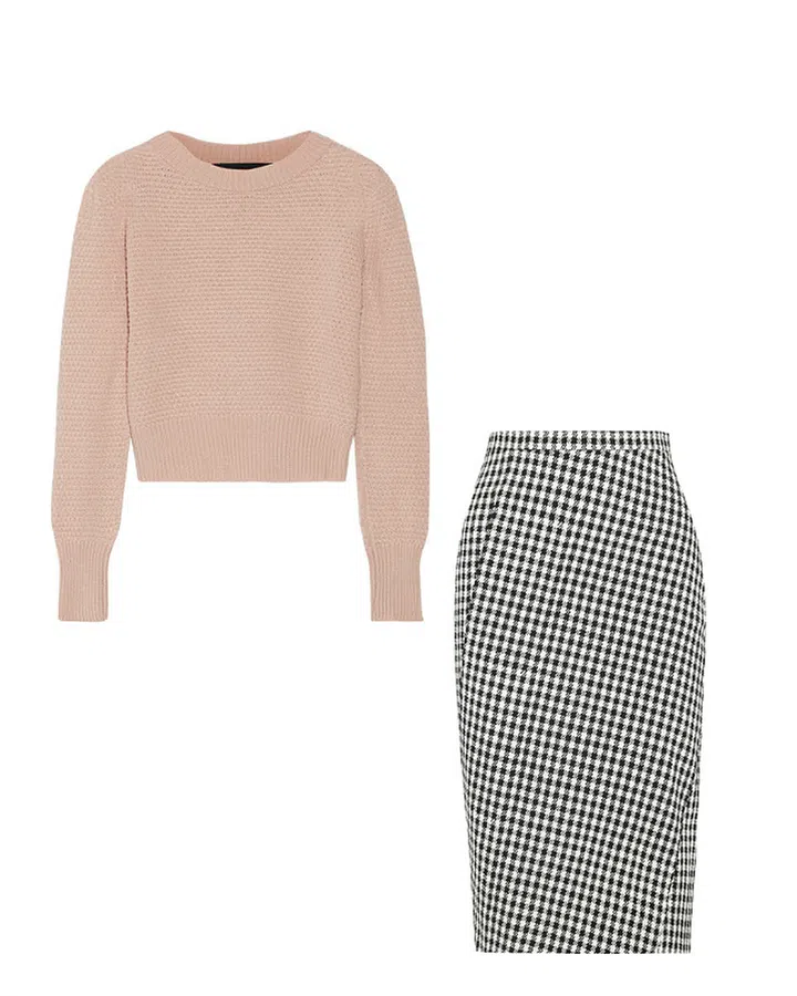 The pencil skirt is a staple in the work wardrobe, and the form-fitting piece can be teamed with a neutral pullover for a modern ensemble. Tip: Go with a cropped pullover to highlight your natural body proportions – you also don’t have to tuck it into your skirt, which is already pretty unforgiving on the waist!