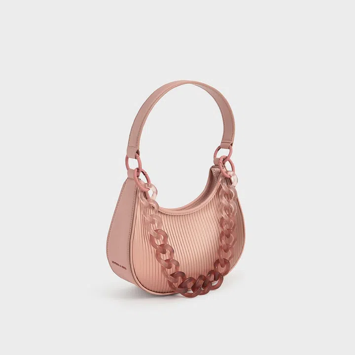 This Acrylic Chain Handle Hobo Bag is one way to add more vintage style to your look. Besides its sleek silhouette and textured panelled finish, this bag comes with a unique acrylic chain that serves as the focal point of your entire outfit.