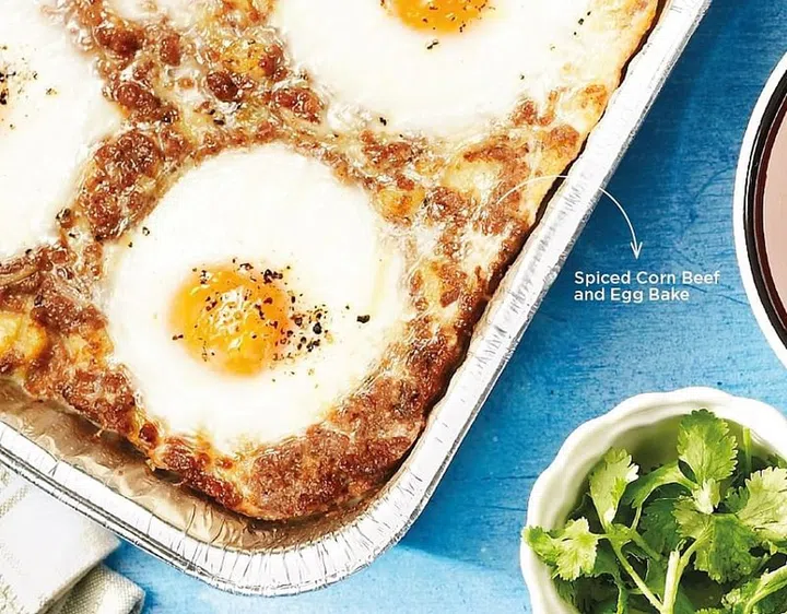 4 Add in the corned beef. Use a spatula to break it up into smaller chunks. Mix well until the meat is well-coated with the spices.
